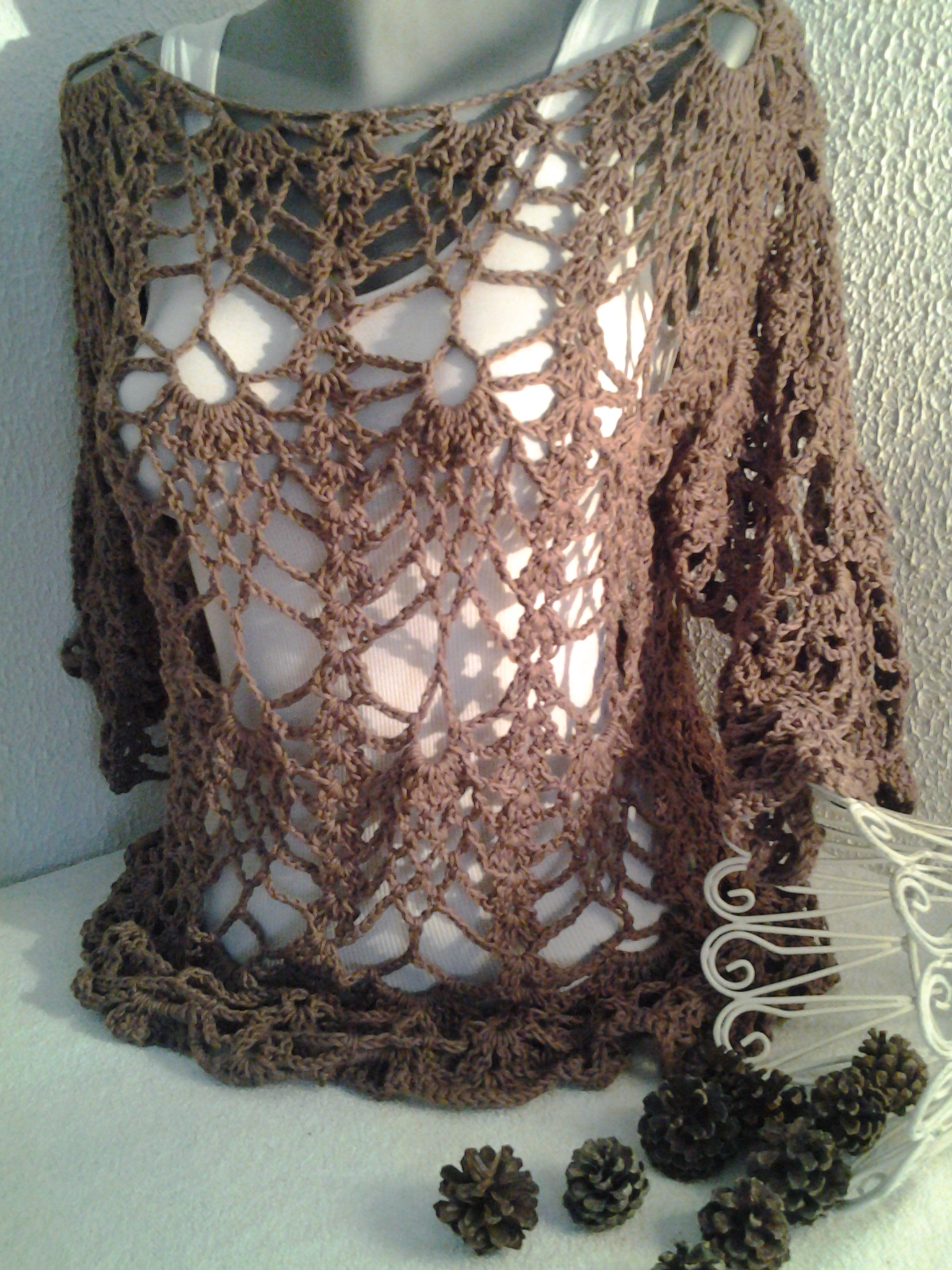 Tejido en hilo de bambú, escote bote, mangas al codo. Liviano y cómodo.